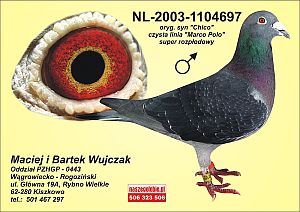Wyniki od 1994 do 2006 roku Oddział - 0285 - Poznań łącznie - gołębie stare + roczne + młode 12 x Mistrz 4 x Wicemistrz 6 x 1 przodownik 5 x 2 przodownik 6 x 3 przodownik Supermistrz Oddziału poz. V, VI, VII 9 x 1 pozycja z lotu 19 x 2 pozycja z lotukat. "Supermistrzostwo" - I wicemistrz 10 x 3 pozycja z lotu 13 x 4 pozycja z lotu 1 x Mistrzostwo Okręgu Poznań 1 x Wicemistrz Okręgu 1 x 1 przodownik Okręgu 1 x 4 przodownik Okręgu 1 x 6 przodownik Okręgu 1 Najlepszy As lotowy młody Okręgu 1 najlepszy As lotowy roczny Okręgu 6 najlepszy As lotowy Okręgu 1 najlepsza roczna samiczka w Polsce - PL-0285-99-15504 - 11k. Rok 2006/2007 zmiana miejsca zamieszkania i przynależności (Oddział - 0282 - Gniezno) tylko loty młode+roczne Rok 2009 loty młode z Oddziałem 0443 - Wągrowiecko-Rogozińskim I Mistrz Oddziału - GMP I Mistrz Oddziału - z 50 II Mistrz Oddziału - ogólny (różnicą 0,2 pkt) I najlepszy As młody Oddziału w GMP Lotowałem tylko 25 gołębiami i po lotach z Stendal (okręg - 400 km) jest 25 gołębi. Nie zgubiłem żadnego Asa młodego. Zdobyliśmy ponad 300 dyplomów i 72 puchary |